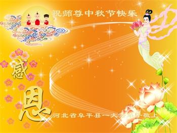 【明慧网二零二零年十月一日】 河北省保定市阜平县一大法弟子恭祝师尊中秋节快乐!