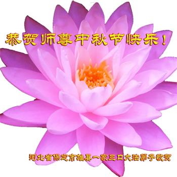 河北省保定市定州市夫妻大法弟子携全家恭祝师父中秋节快乐!