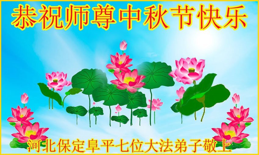 师父好!时间转眼即过,随着时间的推移,助师正法的路已到最后,弟子不忘使命和责任,一定要达成师尊所要、所成。弟子全家三口大法弟子跪拜!谢谢师尊!弟子谢师恩! 河北保定阜平七位大法弟子恭祝师尊中秋节快乐!