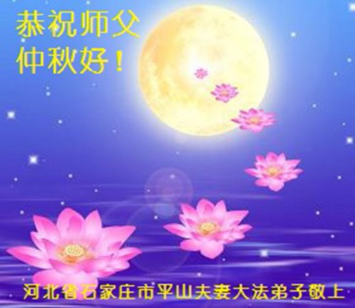 慈悲伟大的师尊!您好!二零二零年中秋佳节来临之际,河北住北京夫妻俩大法弟子敬祝师尊中秋佳节愉快!感恩师尊救度之恩!我俩一定会珍惜师尊给延长来的宝贵时间,学好法,修好自己,努力做好三件事,救度更多的众生,完成自己的使命,跟随师尊回家。跪拜师尊! 北京讲真相一线大法弟子恭祝师尊中秋快乐!