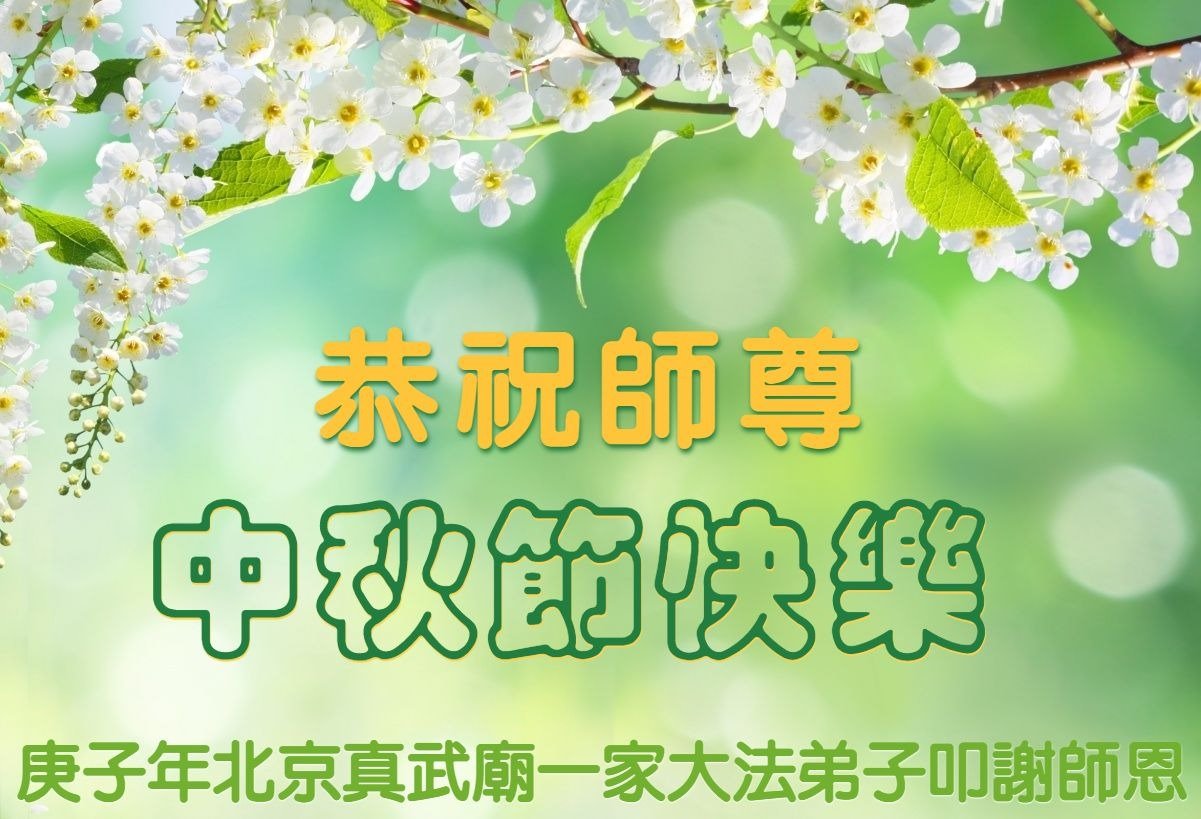 北京海淀一大法弟子敬上 2020年9月21日 北京海淀区老年大法弟子祝慈悲伟大的师尊中秋节快乐!