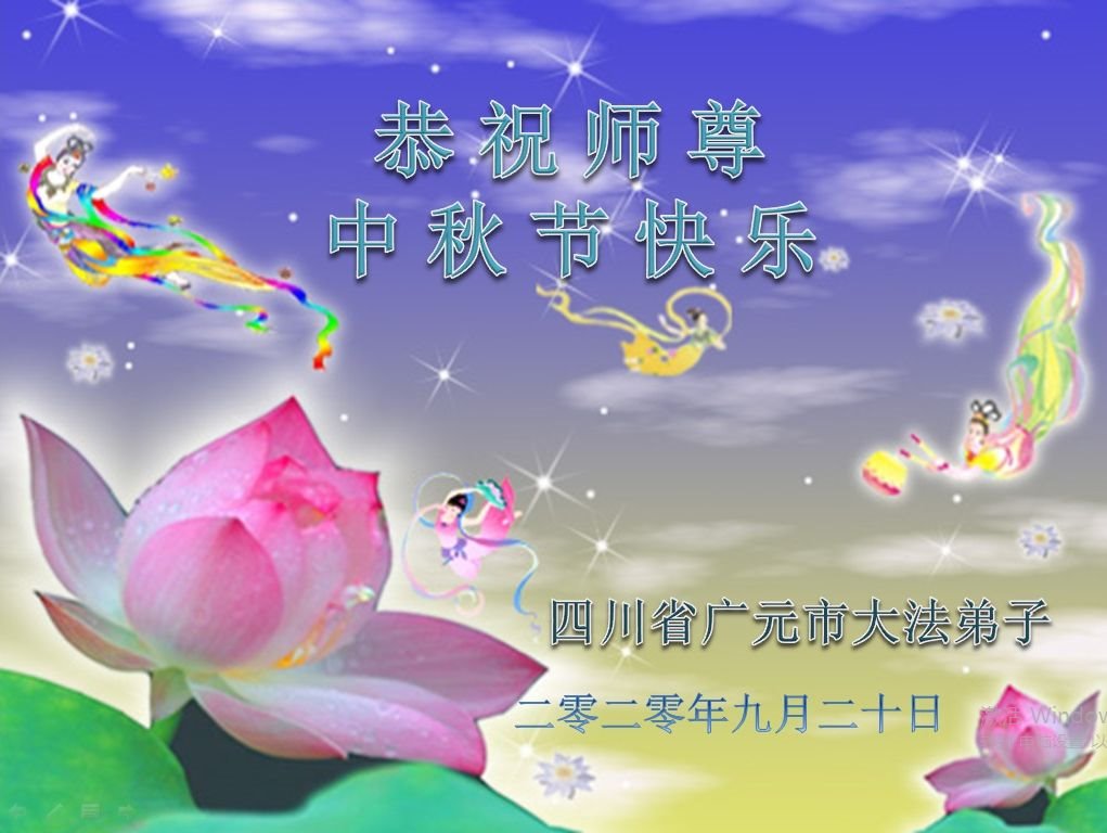四川省乐山市中区一大法弟子及全家三代人敬上 2020年9月24日 四川省广元市大法弟子恭祝师尊中秋节快乐!