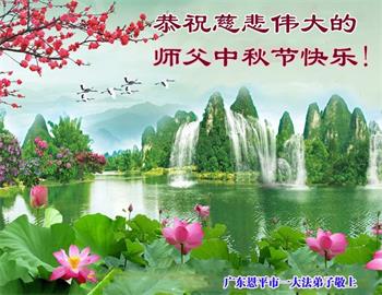 广东恩平市大法弟子及家人恭贺 广东省江门市恩平市一大法弟子恭祝慈悲伟大的师父中秋节快乐!