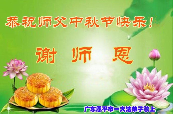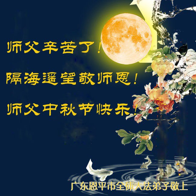 师父辛苦了! 隔海遥望敬师恩! 师父中秋节快乐!广东恩平市全体大法弟敬上 广东省江门市恩平市一大法弟子携家人恭祝师父中秋节快乐!