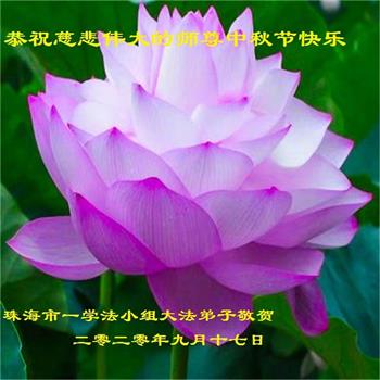 弟子怀着无比感恩的心向师尊致以节日的问候,并向师尊表示:在剩下不多的时间里,弟子要更加精進,继续努力做好三件事,做一个合格的大法弟子,不负师恩与师愿,不负众望。 广东茂名大法弟子 2020-9-7 广东省珠海市大法弟子恭祝慈悲伟大的师尊中秋节快乐!