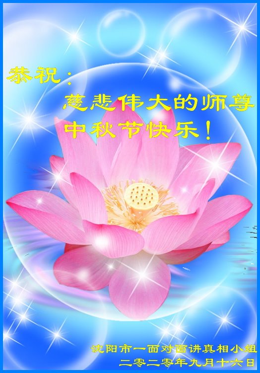 【明慧网二零二零年十月一日】 辽宁省沈阳市大法弟子恭祝:慈悲伟大的师尊中秋节快乐!