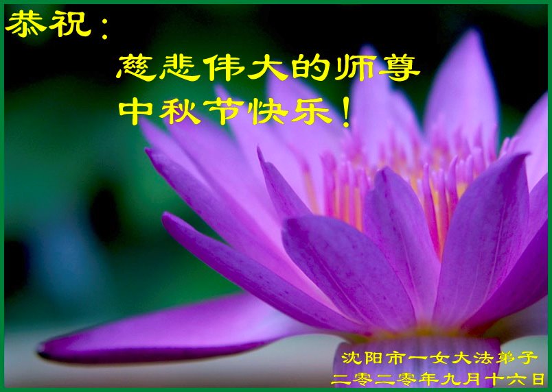 恭祝:慈悲伟大的师尊中秋节快乐! 辽宁省沈阳市沈河区一大法弟子及家人一恭祝师尊节日快乐!