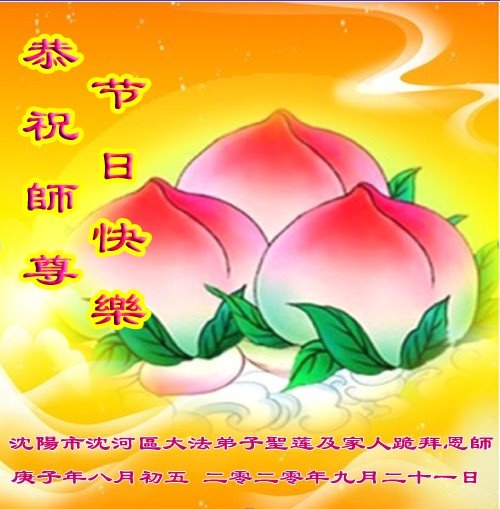 恭祝:慈悲伟大的师尊中秋节快乐! 辽宁省沈阳市大法弟子恭祝:慈悲伟大的师尊中秋节快乐!