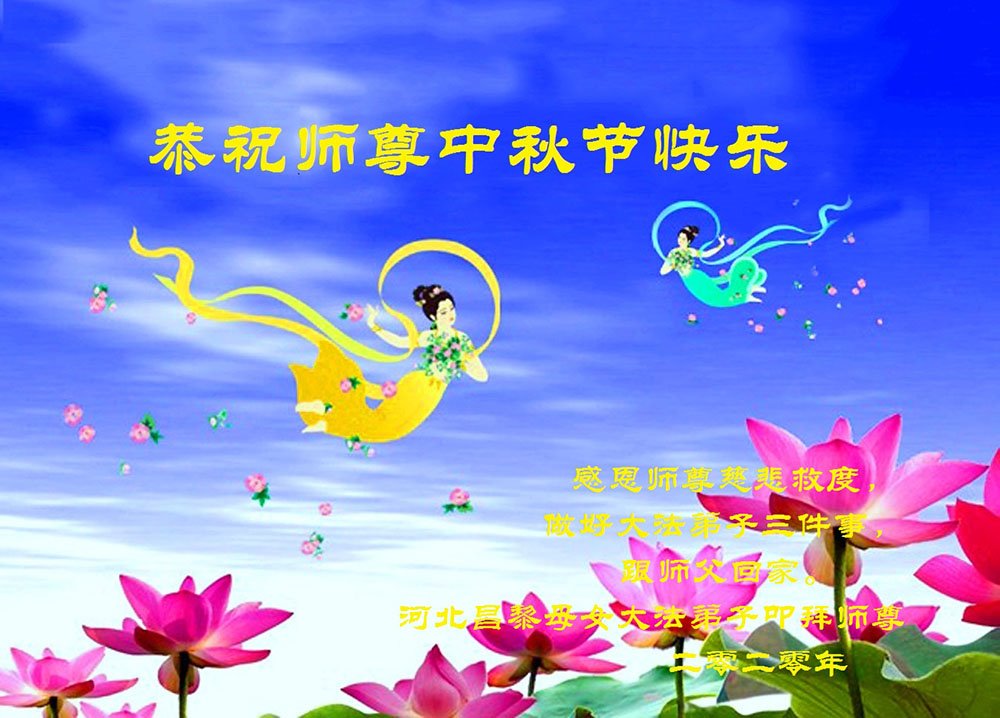 全体大法弟子听师尊话,做好三件事,请师尊放心。全体大法弟子叩拜师尊! 河北大法弟子恭祝师父中秋快乐!