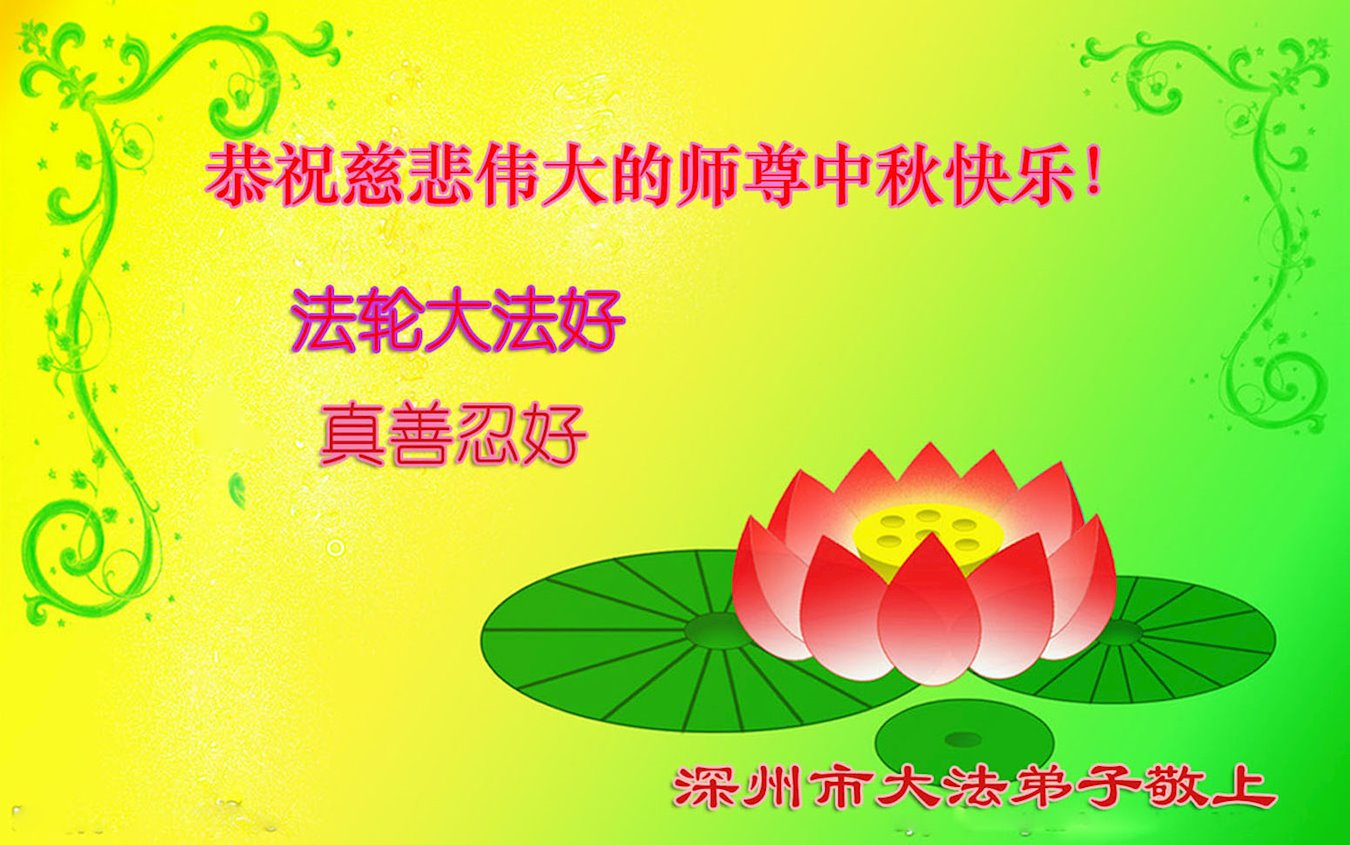 感谢师父!感谢大法!精進实修,修出善心,哪做的不好在大法中归正,跟师父走,跟师父回家。 河北省衡水市深州市大法弟子恭祝师尊中秋快乐!
