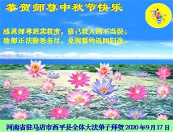 河南省驻马店市西平县全体大法弟子拜贺师父中秋节快乐!
