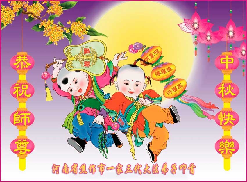 河南省焦作市一家三代大法弟子恭祝慈悲伟大的师尊中秋快乐!
