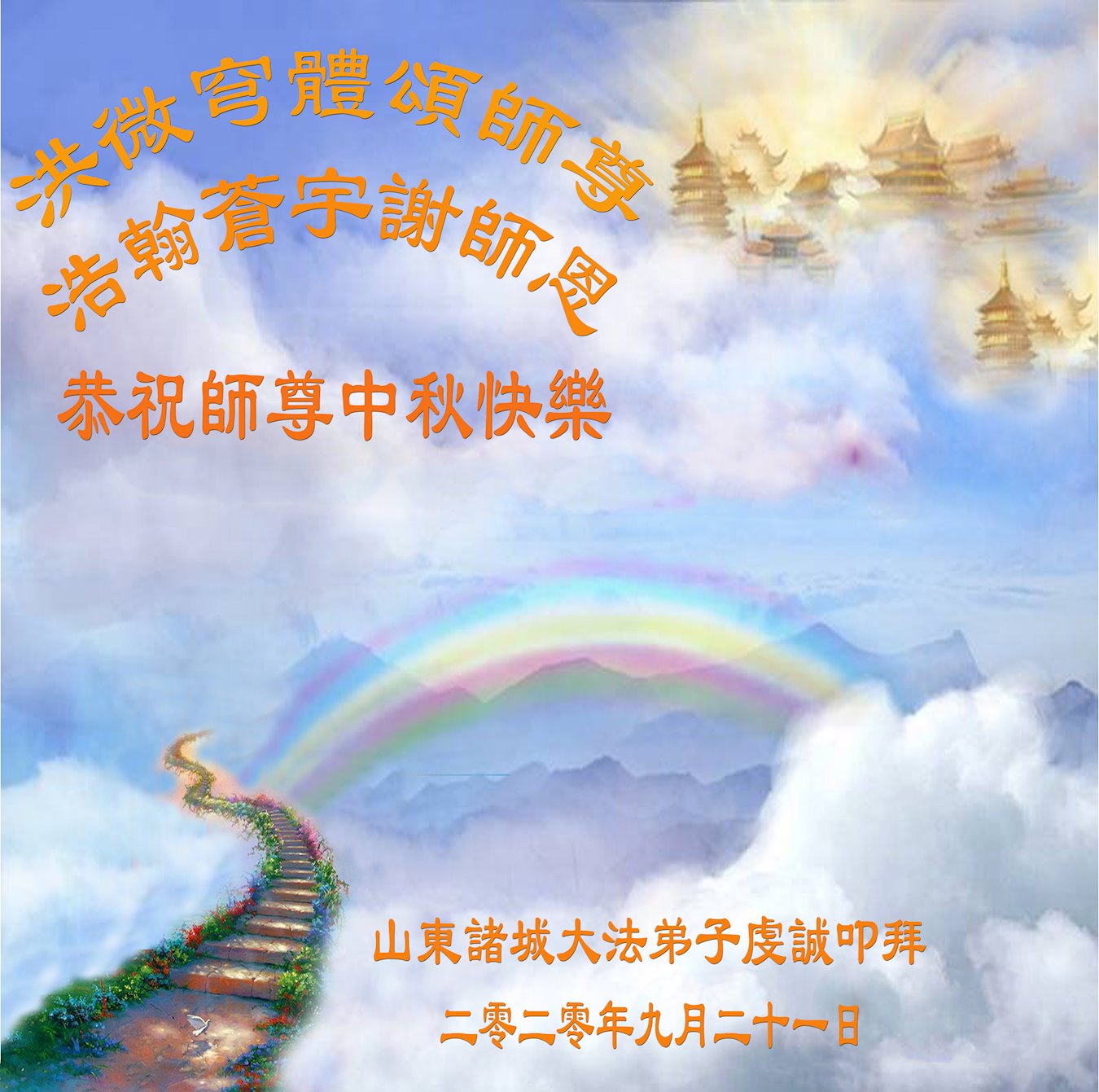 【明慧网二零二零年十月一日】 山东省潍坊市诸城市大法弟子恭祝师尊中秋快乐!