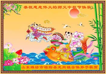 山东省潍坊临朐县龙岗镇全体大法弟子恭祝慈悲伟大的师父中秋节快乐!