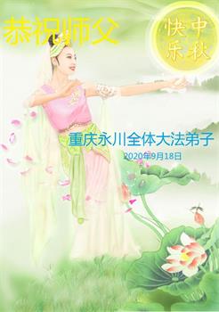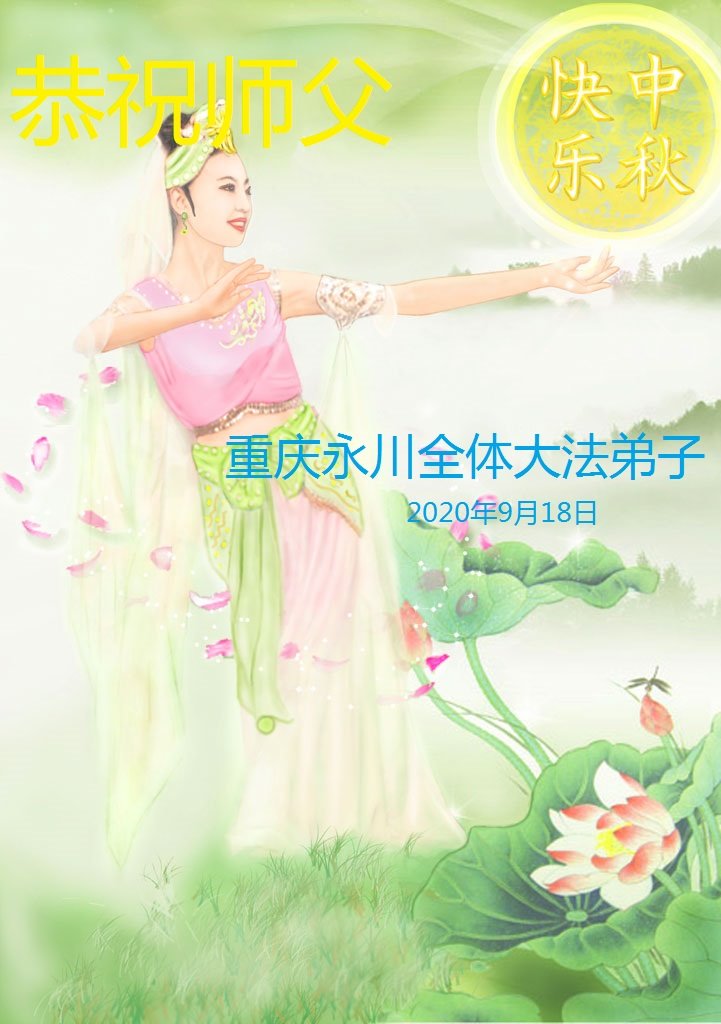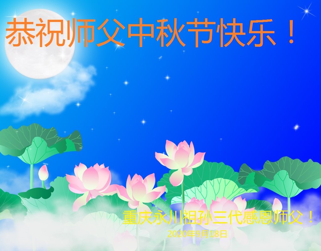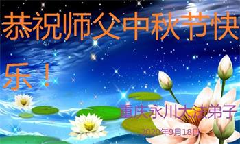 弟子们叩谢恩师! 重庆三位大法弟子敬贺 合十 2020年9月19日 重庆市永川区全体大法弟子恭祝师父中秋节快乐!