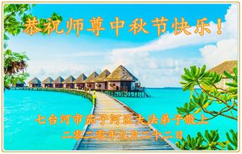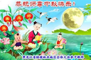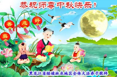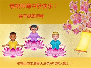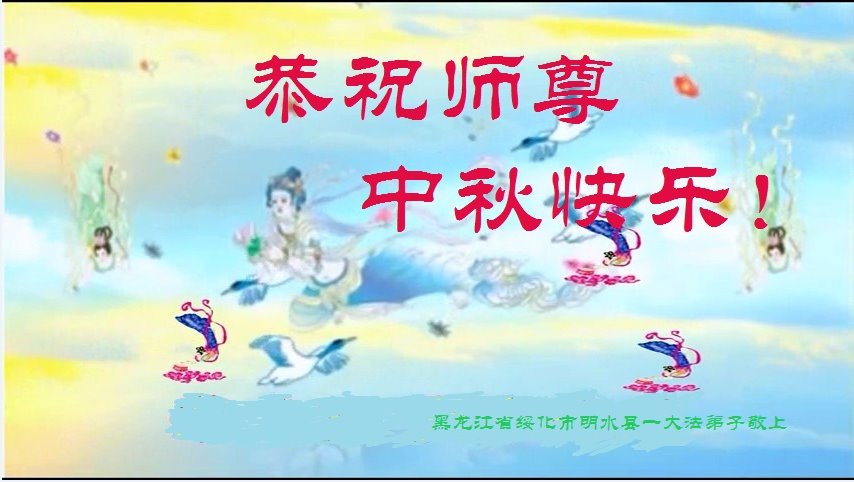 师尊辛苦了!弟子修好自己,作好三件事。让师尊多一份欣慰!少一分辛苦。弟子感恩师尊慈悲救度。 黑龙江省双鸭山市宝清县大法弟子和家人敬上! 黑龙江大法弟子恭祝师尊中秋快乐!