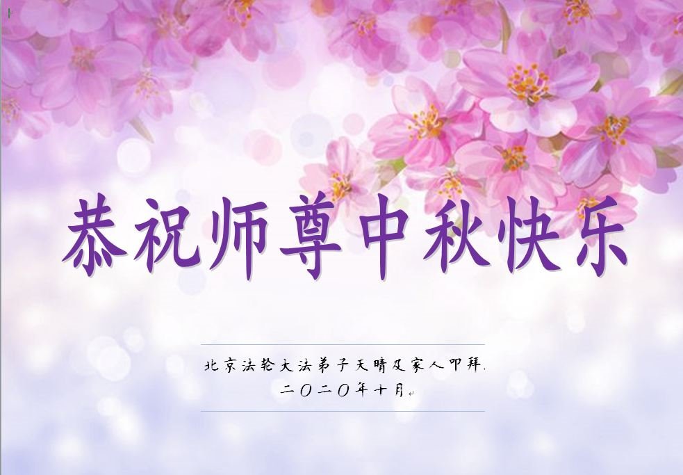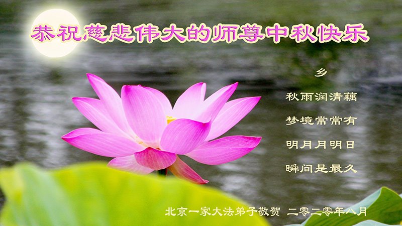 恭祝师尊中秋快乐! 北京朝阳区两家大法弟子及家人敬上 二零二零年九月二十二日 北京一大法弟子恭祝慈悲伟大的师父中秋快乐!