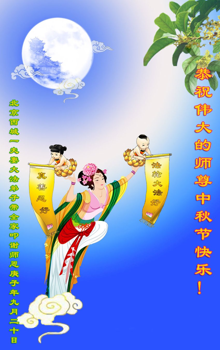 北京西城一夫妻大法弟子带全家恭祝师尊中秋节快乐!