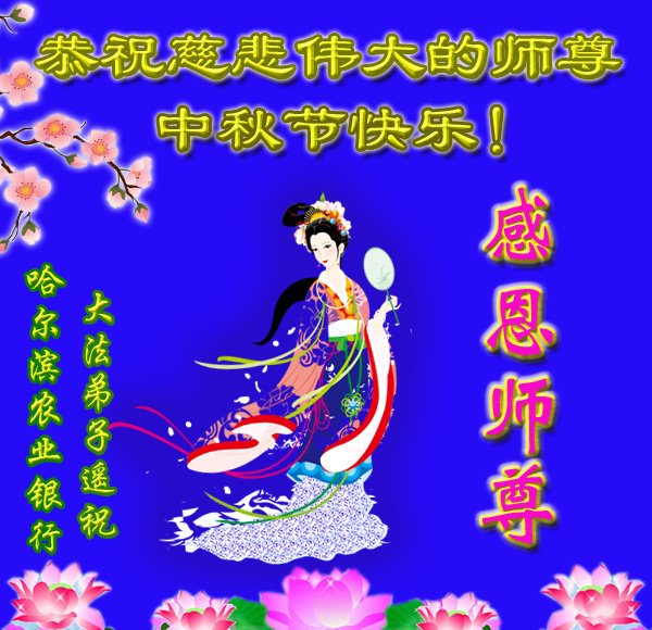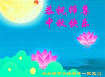 黑龙江哈尔滨大法弟子恭祝慈悲伟大的师尊中秋快乐! 黑龙江省哈尔滨市依兰县全体大法弟子恭祝师尊中秋节快乐!