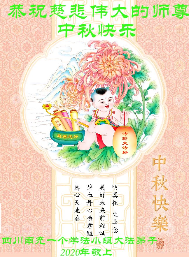 【明慧网二零二零年十月一日】 四川省南充市做真相资料的大法弟子恭祝慈悲伟大的师尊中秋快乐!