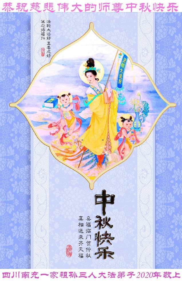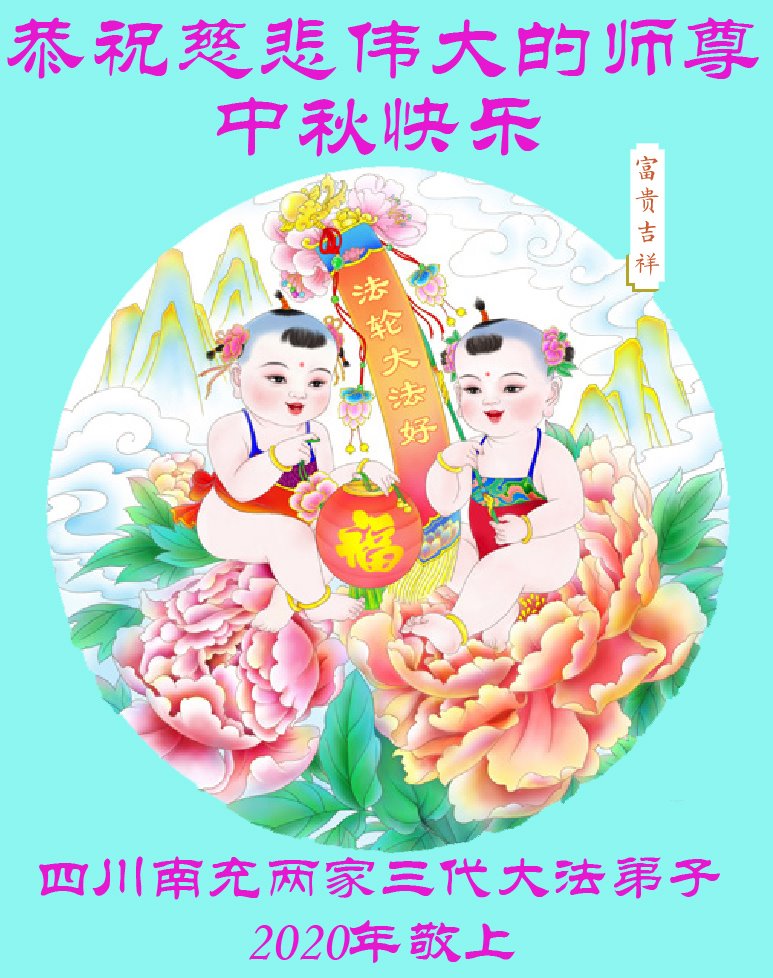 四川南充两家三代大法弟子恭祝慈悲伟大的师尊中秋快乐!