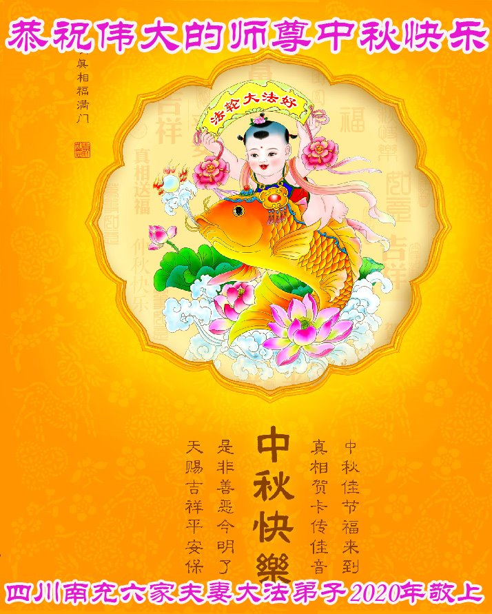 四川南充六家夫妻大法弟子恭祝慈悲伟大的师尊中秋快乐!