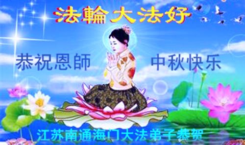 江苏南通海门大法弟子遥祝恩师中秋快乐!
