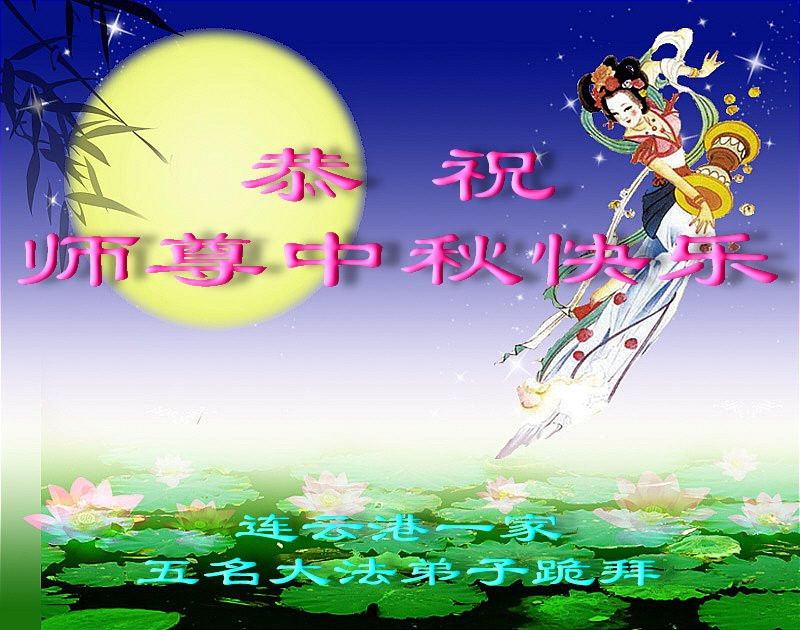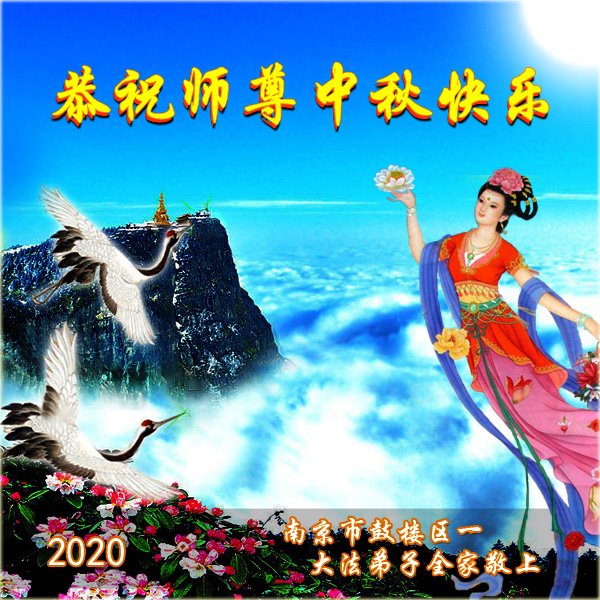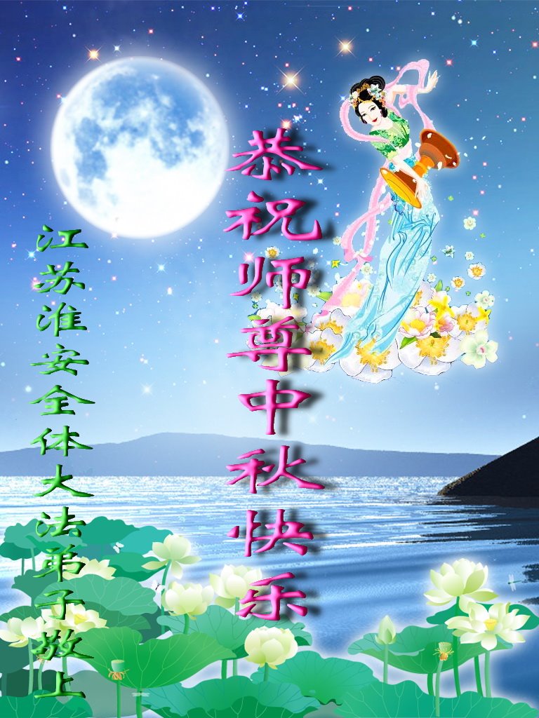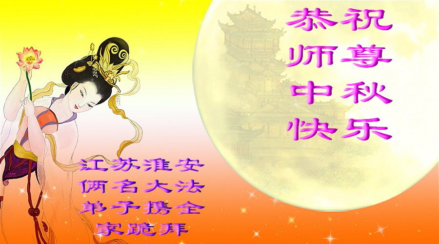 恭祝师尊中秋快乐!感谢师尊救度之恩! 连云港一家五名大法弟子跪拜 2020年9月16日 江苏省淮安市全体大法弟子恭祝师尊中秋快乐!