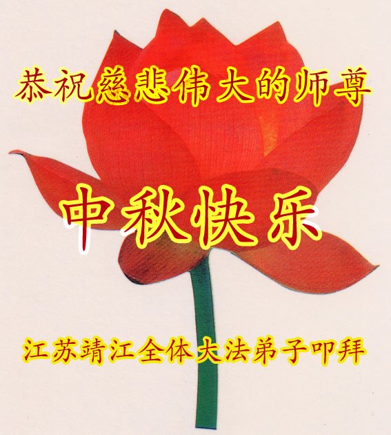 江苏省无锡市五位大法弟子跪拜叩首! 弟子一定正念正行、溶于法中、实修自己、做好三件事、跟师尊回家。 江苏省泰州市靖江市全体大法弟子恭祝慈悲伟大的师尊中秋快乐!