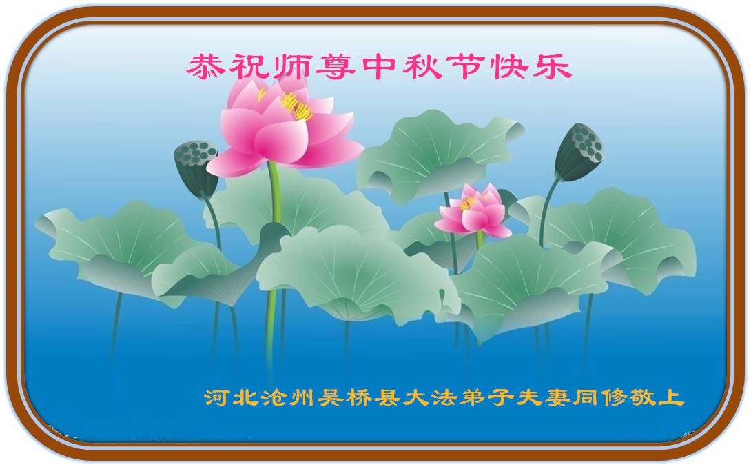 中秋是阖家团圆的日子,盼望师父早日回国。邯郸矿区一夫妻同修祝:师父中秋快乐! 河北省沧州市盐山县大法弟子恭祝慈悲伟大的师尊中秋快乐!