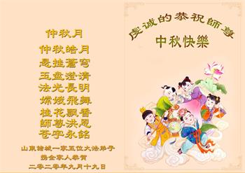 山东省潍坊市寒亭区全体大法弟子恭祝师尊中秋节快乐! 山东省潍坊市寒亭区一大法弟子全家恭祝师父中秋节快乐!