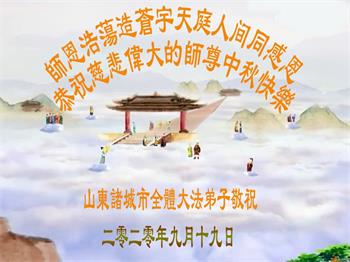山东省诸城市大法弟子四人学法小组敬上 山东省潍坊市诸城市大法弟子全家人恭祝师父中秋节快乐!
