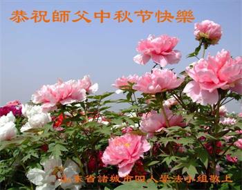 我们一定牢记师父的教诲,学好法,做好三件事,圆满随师还。 山东省潍坊市诸城市大法弟子恭祝师父中秋节快乐!