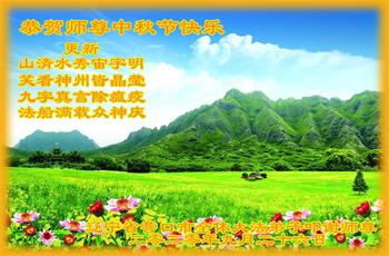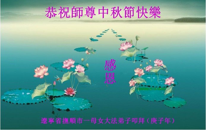 我们都是7.20.之前得法的大法弟子,二十多年的风风雨雨,磕磕绊绊,是您的倍加保护、指点,走到了今天,感谢师恩。完成我们的史前大愿,做好三件事,跟师父回家。 辽宁抚顺市一中年大法弟子恭祝师父中秋佳节快乐!