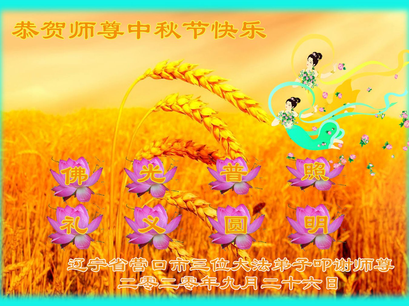 辽宁省营口市三位大法弟子恭祝师尊中秋节快乐!