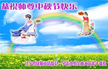 辽宁抚顺一学法小组祝师父中秋节快乐!