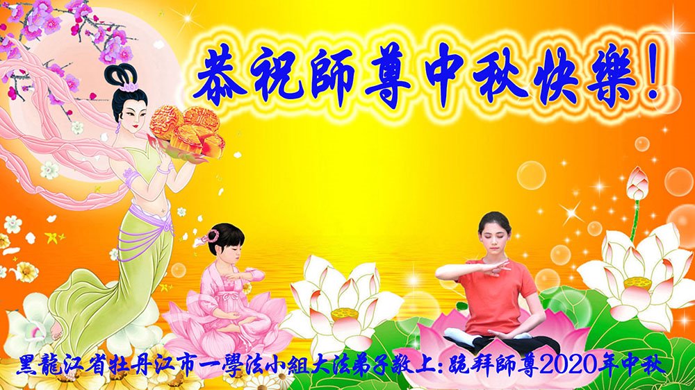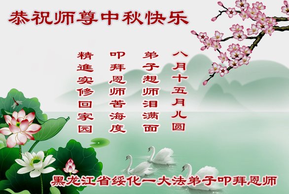弟子深切的感受到师尊为大法弟子的承受与付出,我们要精進实修,做师父的弟子,跟师父回家!谢谢师父!弟子叩拜师尊! 黑龙江老年大法弟子祝师尊中秋节快乐!