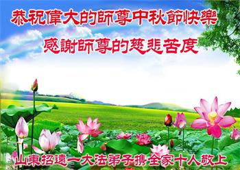 山东大法弟子恭祝伟大慈悲的师尊中秋节快乐!
