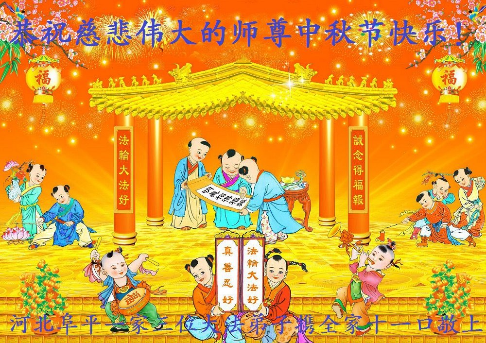 【明慧网二零二零年十月一日】 河北省邢台市信都区一大法弟子全家恭祝师尊中秋节快乐!