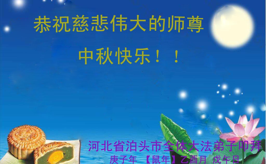河北邯郸市一学法组大法弟子恭祝师父中秋快乐!
