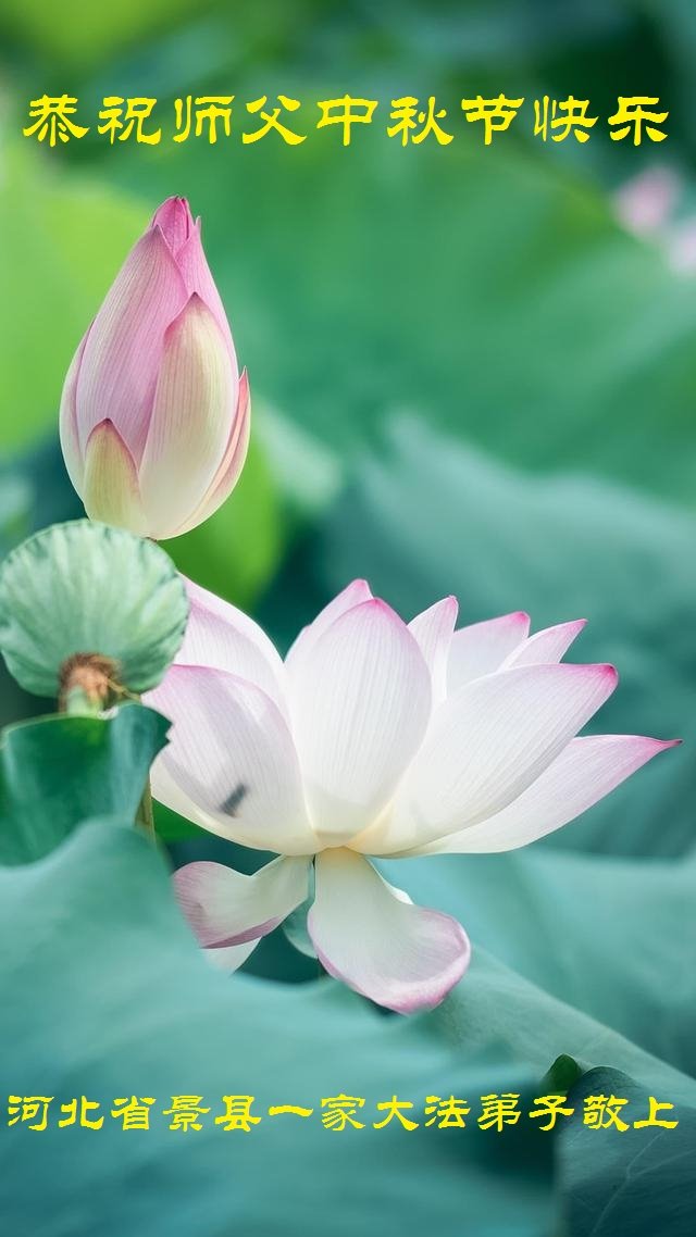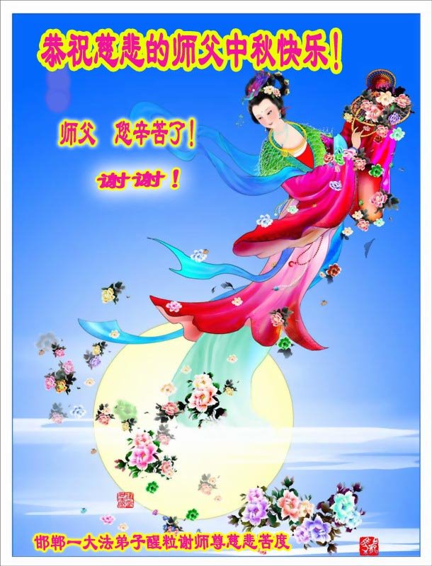师父您辛苦了!在以后的日子里我们会做的更好,多学法、修好自己、证实法、多救人。 河北省衡水市景县一家大法弟子恭祝师父中秋快乐!