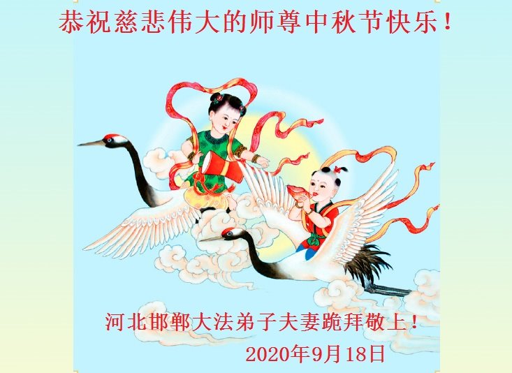 感恩师父的时时保护,慈悲救度!感恩师父为弟子们承受的一切!弟子唯有修好自己,做好三件事,走师父安排的路,以谢师恩!惟愿师尊笑! 邯郸大法弟子夫妻跪拜恩师! 河北大法弟子恭祝慈悲伟大的师尊中秋节快乐!