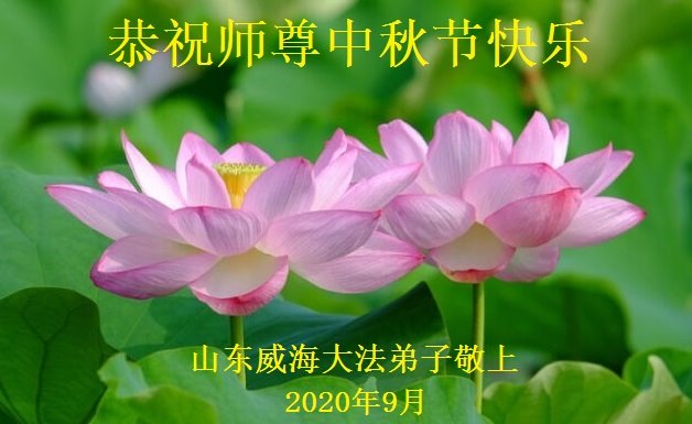 山东烟台招远一大法弟子恭祝慈悲伟大的师尊中秋节快乐! 师尊您好:师尊您辛苦了!弟子想念师尊!感恩师尊的慈悲苦度!弟子唯有更加用心多学法,学好法,以法为师,牢记师尊的“向内找”这个法宝,用心修去人心和执着,用心修心性,用心修好自己,用心努力做好三件事,讲清真相多救人,跟师尊回家! 弟子叩拜慈悲伟大的师尊:师尊:中秋节快乐! 山东烟台招远一大法弟子敬上 2020年9月19日 山东烟台招远一大法弟子恭祝慈悲伟大的师尊中秋节快乐!