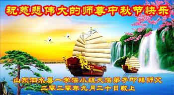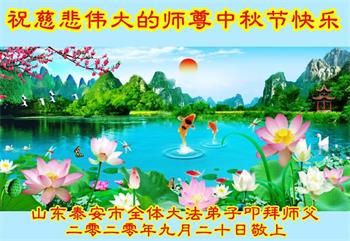 山东泗水全体大法弟子恭祝慈悲伟大的师尊中秋节快乐! 山东泰安市全体大法弟子恭祝慈悲伟大的师尊中秋节快乐!