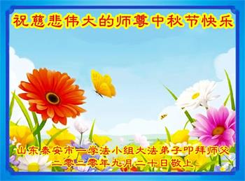 山东泰安市全体大法弟子恭祝慈悲伟大的师尊中秋节快乐! 山东泰安市一学法小组大法弟子恭祝慈悲伟大的师尊中秋节快乐!