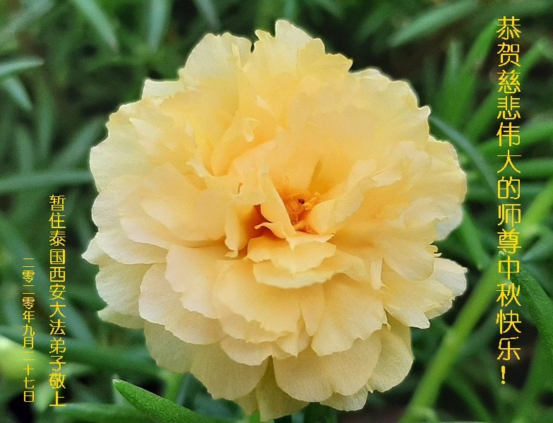 中秋节到来之际,弟子遥寄对伟大师尊的问候、思念和感恩!感恩师父把弟子从红尘中唤醒,引领弟子走上修炼的回归之路;感恩师父慈悲救度和无时不在的保护!是您在末劫时刻挽救了天体,挽救了众生;是您为众生承受了无量的巨难;是您为弟子操尽了心;没有伟大的师尊的慈悲救度,就没有弟子今天的一切。用尽人间所有的语言也表达不了弟子对伟大师尊的感恩之心,唯有精進实修到底,圆满随师还! 弟子叩谢恩师的慈悲苦度! 暂住新加坡大陆四川一老年大法弟子敬上 二零二零年九月二十七日 暂住泰国曼谷的江苏大法弟子恭祝师尊中秋快乐!叩谢师恩!