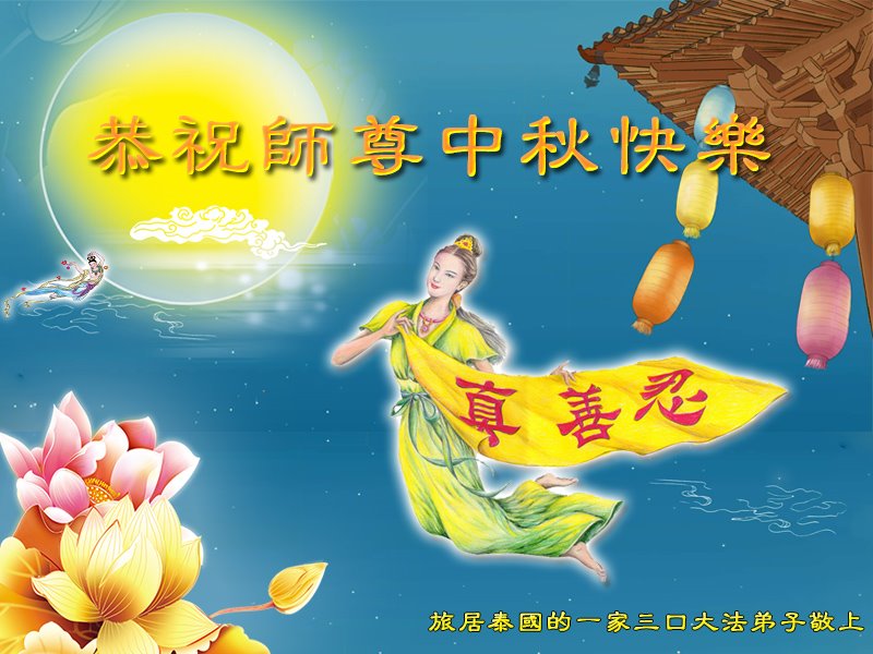 师尊辛苦了,恭祝师尊中秋快乐!弟子要多学法,去执着,做好三件事,跟师尊回家。 暂居泰国的吉林一家四口大法弟子恭祝伟大的师尊中秋节快乐!
