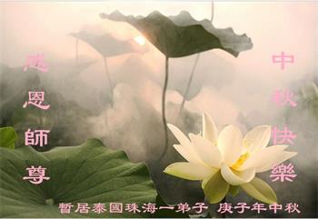 师父弟子想念您! 在泰国暂居的广东省珠海市一大法弟子恭祝师父中秋快乐!