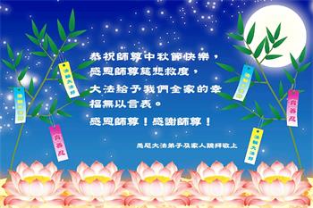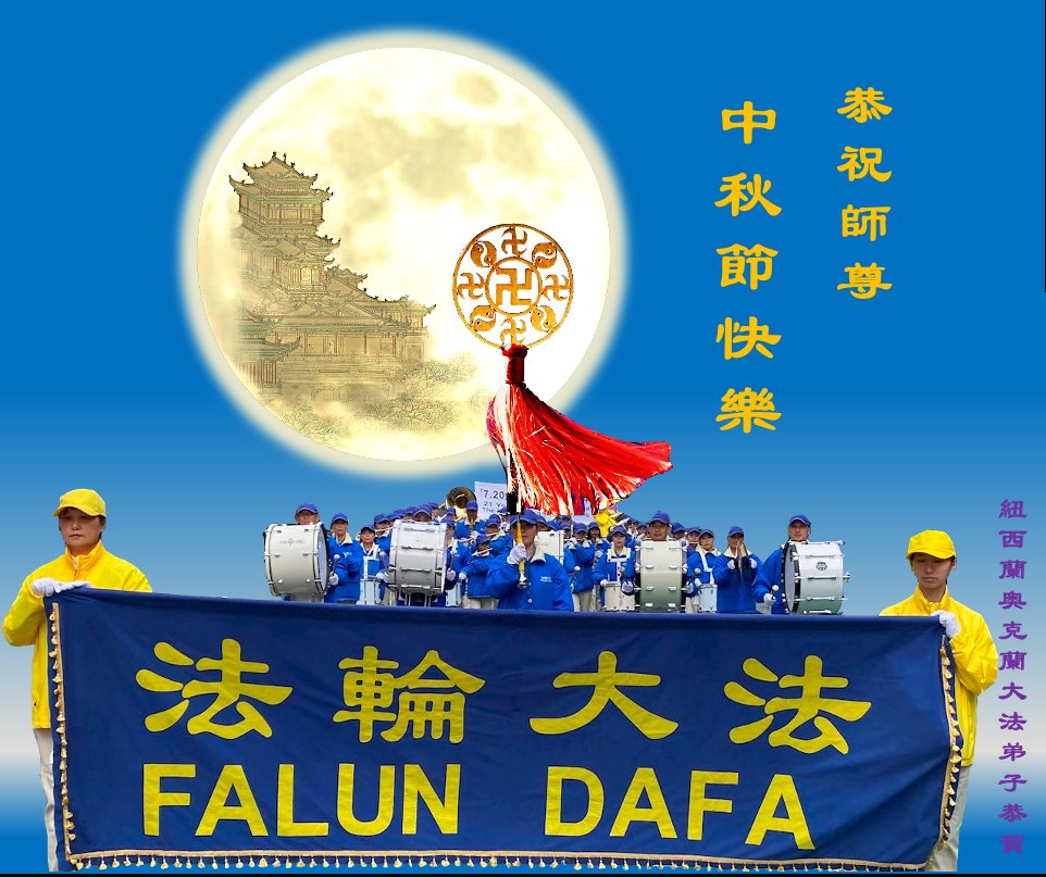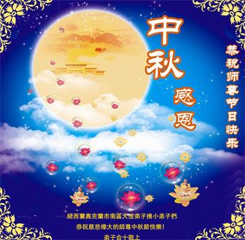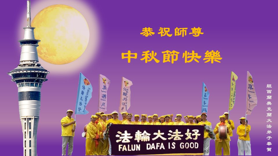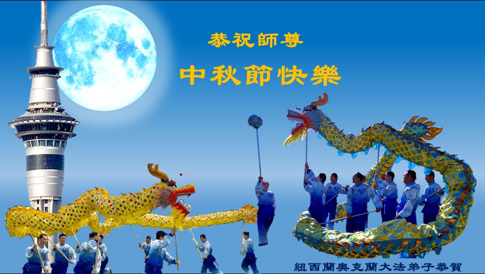 恭祝慈悲伟大的师尊 中秋节快乐! 法轮大法好,真善忍好! 感恩师尊! 新西兰法轮大法弟子恭贺