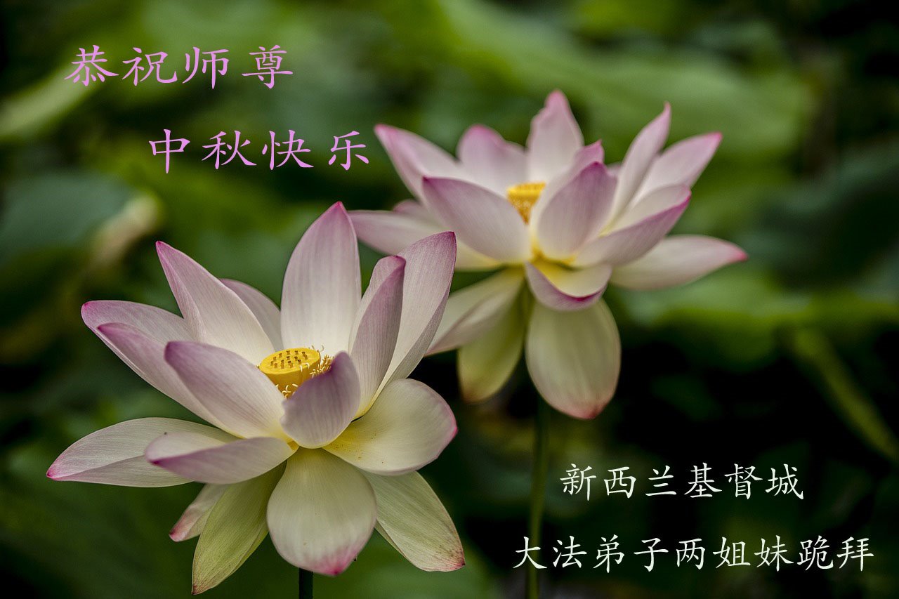新西兰基督城俩姐妹恭祝师尊中秋快乐!